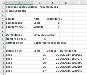 Avec Volleyball Scores - Express vous serez en mesure de : * Définir des noms el couleurs d'équipe personnalisés * Choisissez le format de jeu : jouer tous les sets ou gagner par le plus de sets * Configurer le nombre de sets par jeu * Configurez individuellement le nombre de points par set et si un limit est applicable * Spécifier l'équipe qui sert en premier * Réinitialiser le set en cours ou le jeu entier * Substituez l'équipe qui sert * Configurez le nombre maximal de temps-morts et de substitutions autorisés par set * Suivre vos temps-morts et substitutions * Annuler des points (appuyez et maintenez ou cliquez avec le bouton droit) * Échanger côtés du champ, à tout moment, au besoin * Voir les scores finaux pour tous les sets joués * Copiez un tableau récapitulatif des résultats du jeu et collez-le dans votre logiciel de tableur préféré