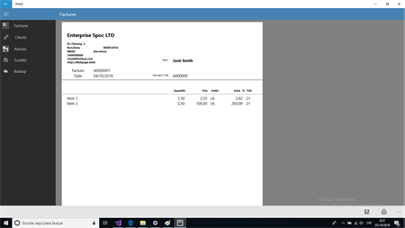 Application pour émettre des factures de manière simple et rapide. Une facture peut être établie immédiatement sans qu’il soit nécessaire d’introduire au préalable le client ou les articles.