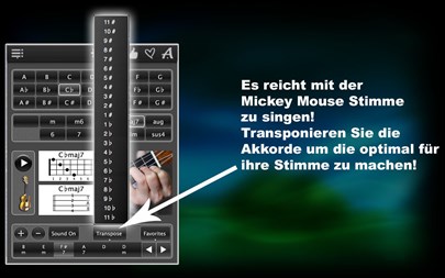 DESCRIPTION Play the ukulele chords right away - no experience required! The app contains all necessary chords to be able to play all your favorite songs! Take advantage of clear, easy-to-use interface and learn the basic and advanced chord charts. You can: - see the chords standard string representation, in TAB-representation and as coloured photos, - listen to the chords you picked with original instrument sound, - drag and drop pictures with chords to your documents, - create, save and load the chords of your favourite songs, - transpose the chords to level which is optimal for you.