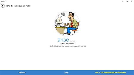 The activities in "4000 Essential English Words" are specially designed to make use of important learning conditions. Firstly, the words are introduced using sentence definitions and an example sentence. The activities that follow in the units encourage learners to recall the meanings and forms of the words. Some activities also make the learners think about the meaning of the words in the context of a sentence—a sentence different from the sentences that occurred in the introduction of the words. Moreover, each unit ends with a story containing the target words. While reading the story, the learners have to recall the meanings of the words and suit them to the context of the story. Such activities help learners develop a better understanding of a common meaning for a given word which fits the different uses.