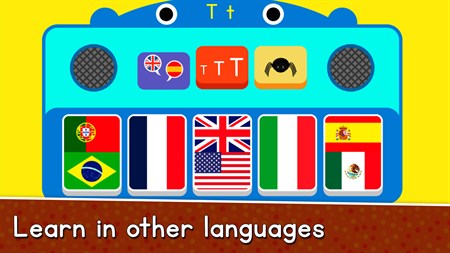 You can even learn the alphabet in more languages (English, Spanish, Portuguese, Spanish and Italian).