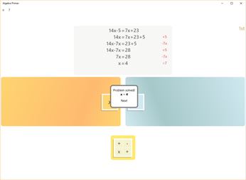 What's the key to developing strong math skills? Practice! The Algebra Primer app gives kids just starting out in algebra the tools they need to easily practice manipulating and solving basic algebraic equations.