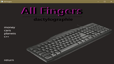 this is an app to learn how to write with 10 fingers it has a simple menu you can practice single letters that always appear in pairs on the screen then you can also practice gauze lines either the middle or the top or the bottom simple words which are divided into categories; You cannot practice special characters, just the letters to use the menu go down = press downdactylographi