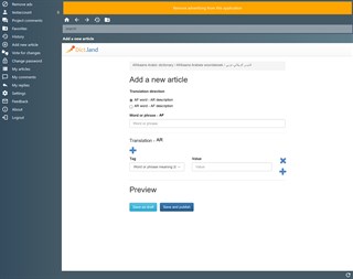 Application features: - Favorites. - History. - Various settings like color themes. - Text to speech. - Commenting. - Adding a new article to sandbox. Users will vote for your article. Upvoted article will get to the main database.