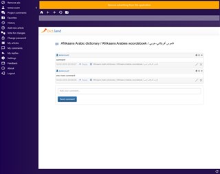 This is Afrikaans - Arabic dictionary. The dictionary works offline, search is very fast, and the application has online social features. Dictionary database will be downloaded when you run the application the first time. To get the access to online features you will have to signup. Be social!