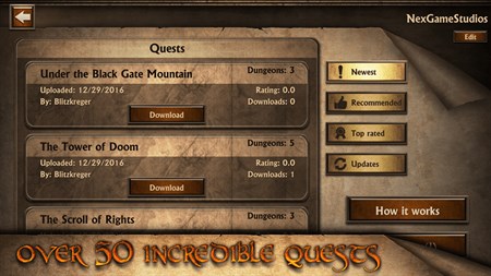 Featuring: - 8 legendary heroes classes to choose from - Over 50 quests to play to entertain for hundreds of hours - No IAP unlockable content, the game is 100% free - Tons of equipment and spells options to customize your heroes - Try the quests editor! Create and publish your own quests, or play the adventures created by other players! - Fully translated into English, French, German, Italian and Spanish