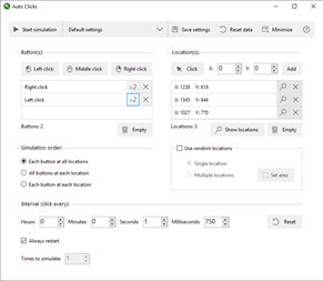 Auto Clicks is a software application that simulates clicks at random or user selected location(s) and time. Automate any click-based pattern task by using Auto Clicks.