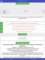 AWS Certification, Exam Preparation, Quiz, Score Tracker. Quiz App with score tracker, Score card, countdown timer, highest score saved. Access Answers after completing the quiz for each category. This Cloud Certified Solution Architect Associate Exam Preparation and Readiness Quiz App helps you prepare for the certification SAA-C03 with updated Questions and Answers. The app contains questions and answers and resources about: - Design High Performing Architectures, - Design Cost Optimized Architectures, - Design Secure Architectures, - Design Resilient Architectures, Features: - Quizzes with score tracker, progress bar, countdown timer and highest score savings. - Can only see answers after completing the quiz. - Show/Hide answers button option after completing quiz in each category. - Ability to navigate through questions for each category using next and previous button. - Resource info page about the answer for each category and Top 60 Tips to succeed in the exam. - AWS FAQs (Frequently Asked Questions) - AWS CheatSheets - AWS Flashcards - AWS Latest Services at Re:Invent - Ability to study and practice from your mobile device with an intuitive interface - SAA-C02 compatible Various architectural Questions and Answers about AWS, AWS SDK, EBS Volumes, EC2, S3, KMS, Read replicas, CloudFront, OAI, Elasticity, Virtual Machines, Fargate, EKS, Architecture, AWS Security, Lambda, Bastion Hosts, S3 Storage Classes, S3 lifecycle policy, glacier, kinesis sharing, API Gateway, AWS Snapshots, Auto shutdown Ec2 instances, High Availability, RDS, DynamoDB, Elasticity, Caching, Containers, AWS Architecture, Load Balancing, EFS, NLB, ALB, Auto Scaling, DynamoDB(latency), Aurora(performance), Multi-AZ RDS(high availability), Throughput Optimized EBS (highly sequential), CloudWatch, CloudTrail, Elastic Beanstalk, OpsWorks, RPO vs RTO, HA vs FT, Access Management Basics, Shared Responsibility Model, Cloud Service Models, AWS Autoscaling groups, AWS placement groups, VPC Privatelink, VPC Flow logs, AWS System Manager, AWS Managed Services, Amazon EMR, Machine Learning, Amazon Lightsail, Security Governance in Serverless Applications, AWS AI/ML, Apache Kafka, Apache Spark, Amazon Quicksight, Amazon Redshift, AWS Config, Amazon IoT, Data Lakes, SageMaker, Kubernetes, Amazon DevOps, Amazon ECS Anywhere, Amazon Aurora Serverless V2, Amazon Monitron, Amazon Lookout, AWS Proton, Babelfish, Amazon ECR, ML Analytics, AWS Workspaces, DAAS, IAAS, SAAS, PAAS, AWS EC2 for Mac, IAM, S3 FAQs, EC2 FAQs