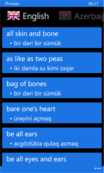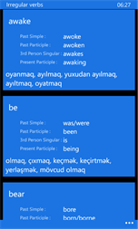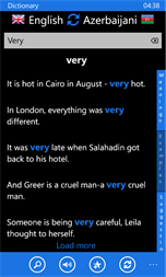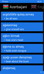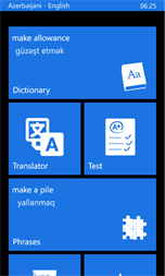•English → Azerbaijani 78,000 words and phrases. •Azerbaijani → English 61,000 words and phrases. •English irregular verbs. •Test •English ↔ Azerbaijani translator (online). You can translate text and listen. •350 phrases