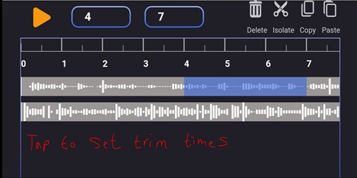 We could not find a basic audio editor for the everyday person, so we are offering it here. The core functionality is just adding audio tracks from your device on top of one another. You can drag each track to a delayed start time, select individual tracks and trim out sections, copy and paste sections, and export the final track to your Downloads folder.