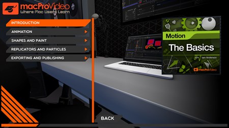 After learning the basics, you're ready to dive into the fun part... animation! Iain explains the different ways to animate with Motion, from using keyframes and behaviors to triggering Motion with audio. You also learn about the many uses of replicators and particle emitters. Once you're ready to get your work out of Motion, you learn to export it into a movie for use into any editing program, export it as a Generator with Drop Zones for use with Final Cut Pro.