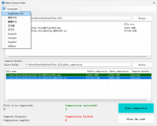By selecting a folder, all files in the folder are added to the list at once. After a file is selected for compression, a folder will be generated by default to store the compressed files.