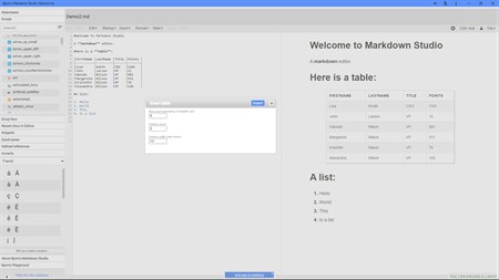 Create and edit 'markdown' documents with this new file system and Google Drive integrated web app (PWA). Opens .md files from local hard drive or Google Drive. "Open with" support for .md files. Live preview of markdown 2 HTML. Set markdown paragraph types (make headings, lists, code etc.). Export and upload generated HTML to Gdrive or local hard drive. Quickly create markdown tables by inserting data from Google Sheets, CSV files or TAB delimited text. Re-format markdown tables. Sort markdown tables. Re-arrange markdown tables - move rows up/down, move columns left/right. Use different CSS stylesheets when previewing. Quickly insert emojis. Manage and use your personal collection of favorite emojis. Select and embed image data (convert images to "data urls"). Speedy access to accent characters. Re-use snippets of often used text.