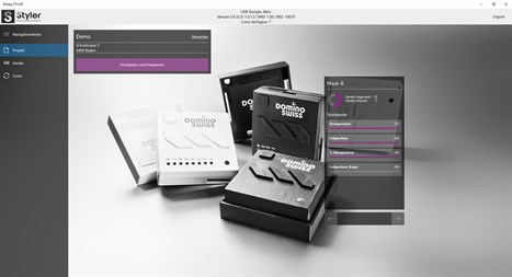 Mit der STYLER Windows App kann das konzipierte Projekt aus dem STYLER onlineTool in die App (lokal) heruntergeladen werden. Im Anschluss lassen sich alle vorhandenen DOMINOSWISS-Komponenten ganz einfach konfigurieren.