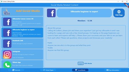 Lastly, the Key Info module provides quick access to essential resources, enabling you to keep track of important information, download links, and more—all in one convenient place. With these supplementary features, our app becomes not just a learning tool, but a comprehensive hub for Silhouette Cameo enthusiasts to enhance their skills, connect with others, and access valuable resources effortlessly.
