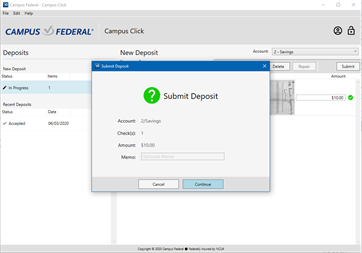 Campus Click Remote Deposit allows you to make multi-check deposits to your business checking and savings accounts.