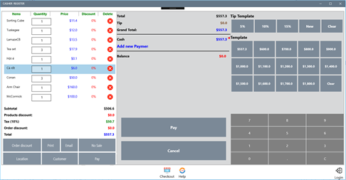 Cash Register provides all of the functionalities that you need to keep track of your inventory and sell your products using your tablets/PC as a cash register/inventory system. This app has the following features: