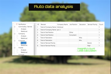 There are 5 templates for pre-designed table for user to add customer information. There are automatic data analysis and relational in each template. There are also 9 data categories automatically generated. This “Data Category” helps to find out any data relationship and reference.