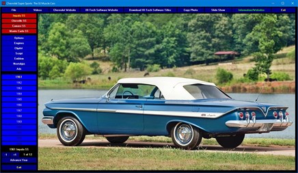 Another officially licensed DVD-ROM from HI-Tech Software. This photographic encyclopedia of the legendary Chevrolet Super Sports muscle car contains over 300 hi-res (1200x730) photos, graphics, TV Commercials, over 150 magazine ads and much more. The tour starts with the introduction of the SS series in the 1961 Impalas through the "luxury" Monte Carlo SS 454 models. Browse the statistics, the options, those tremendous horsepower engines, the emblems, the scripts, etc. It’s all here! Everything you want to know about every year. A must have for any Super Sports owner or enthusiast!