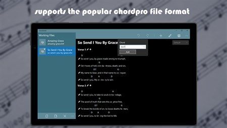 - Easy and intuitive visual interface - ChordPro, Leadsheet, and OnSong format support - Powerful backend chording system - Cloud storage integration with Dropbox