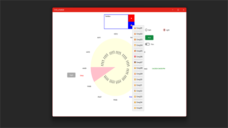 1. Plan day and night schedules with circle like pie chart. 2. Apply 7 colors in arc segments by time. 3. Save time schedule in SQLite database. 4. Contact us for more information, please, mail to sungho@xxhwangxx.net.