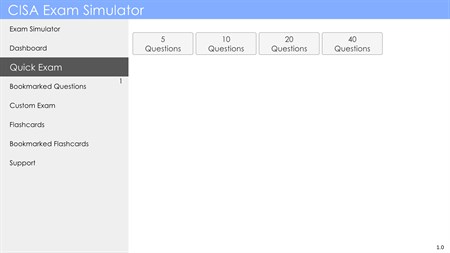 SIMULATOR MODE The simulator mode is created to replicate the actual CISA exam format to help you go through a mock exam prior to your actual exam.