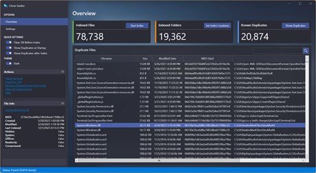 Clone Seeker empowers users to locate and eliminate duplicate files on their computer or networked resource. The application additionally supports exporting the data on duplicates to Excel where it can be further analyzed.