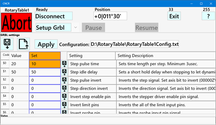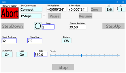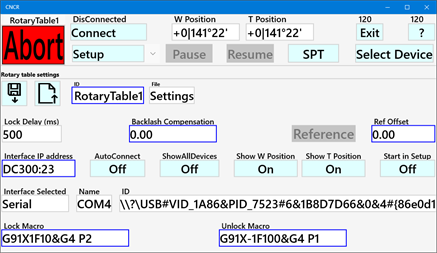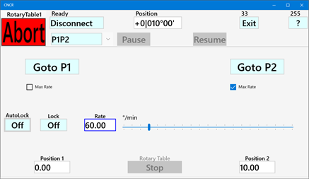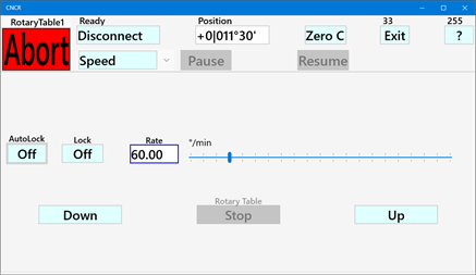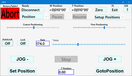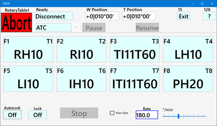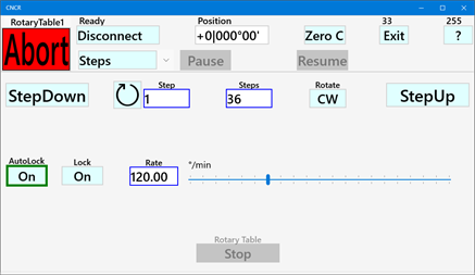 CNCR turns a stepper motor controlled rotary table into a CNC controlled device. It makes it easy to accurately set a position, rotate an index step back and forth, move between two positions, select a tool (ATC) or run at a constant speed. An automated lock signal can lock the rotary table between moves. Place the rotary table on the cross slide of your lathe and you can change tools by pressing a button. CNCR is optimized to run on a small 7" touchscreen. The supported controller is GRBL version 1.1 (grblHAL, Grbl_ESP32 or compatible), free open-source controllers based on affordable Arduino hardware. The controller can be connected by USB, Bluetooth or a (Wi-Fi) network. The app is also provided as a unlimited 30 days trial version. If you ever wanted to CNC your rotary table, this is the easy and affordable way to do it. Considering a CNC lathe, checkout CNCL.