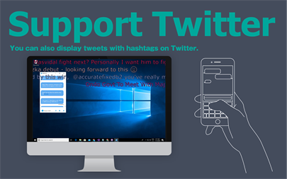 Main features · Comments posted on the web appear over the screen in real time. · You can display tagged tweets on Twitter. · Visualize the feelings and excitement of the audience using emojis. · It corresponds to Power Point and Google Slides.