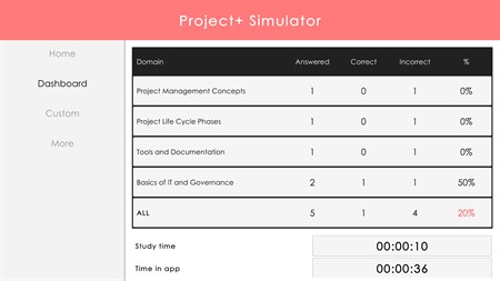 DASHBOARD Track your progress including which domains you need to focus on, how many mock exams you've passed or failed, your total study time and much more.