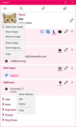 Export and import contacts as business cards and table.