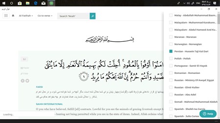 The book of Quran with access to 4 website features: with the ability to read and hear different languages and translation -------------------------------------------------------------- کتاب قرآن با دسترسی به 4 وب سایت امکانات : با قابلیت خواندن و شنیدن و ترجمه با زبانهای مختلف -------------------------------------------------------------- كتاب القران الكريم مع الوصول إلى 4 ميزات الموقع: مع القدرة علي قراءه وسماع لغات مختلفه والترجمة