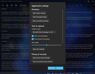 Dictate reports, emails, documents to the app. Select text and read the selected or the whole text aloud. Convert selected or all text into audio file (wav, mp3, wma, m4a, flac, alac, hevc, mp4, wmv). Select voice (language), voice speed, spell check and choose weather words and sentences should be highlighted when speaking out.