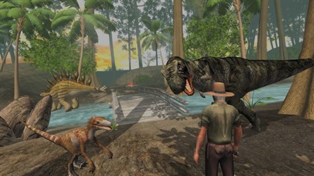 Use a vast amount of weapons to hunt by day and build a camp fire at night to keep those dangerous dino’s in sight.