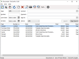 DoConPro is the Windows desktop software to manage your documents, contacts and products. A document is where the contacts and the products come together.