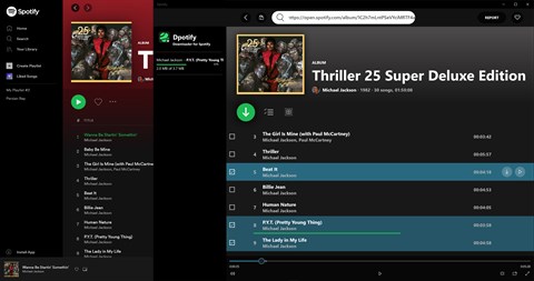 Wanna actually download music from Spotify? Music on Spotify are now downloadable on all Windows Platforms. Listen to your music, from your MP3 file on any MP3 player device. With Dpotify, you have access to a world of downloadable music. You can listen and download albums and single tracks by copy an paste the links in the app.