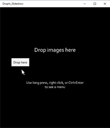 With DropIn Slideshow, you can quickly create a slideshow – just add images using drag and drop. Once you have added two or more images, the show begins! You can view the slideshow in its own window while you run other apps, or see the show in full screen mode.