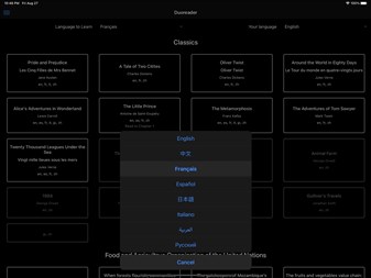 Duoreader supports languages including Chinese, English, French, Spanish, Italian, Japanese, Arabic, Russian and the list keeps growing.