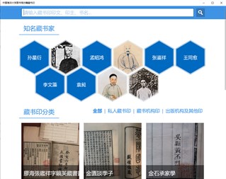 本应用中国海洋大学古籍藏书印数据库的 Windows App展示,提供中国海洋大学图书馆古籍中300余藏书张的图片展示,并提供对应的印主、藏书印单位简介,从而集中展示古籍普查成果,为公众普及古籍 知识,及校史馆史变迁。