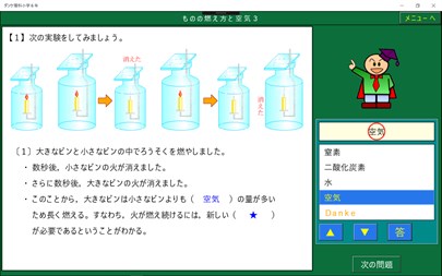 小学校6年生で学習する理科のソフトです。たくさんのイラストで楽しく学習できます。学習指導要領にもとづいています。