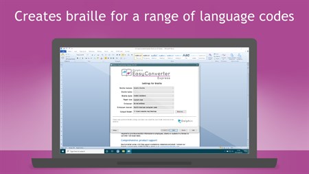 Convert your Word documents into the full range of alternative formats with EasyConverter Express. Make Braille, large print, MP3 and text only ePubs without any relevant expertise or experience. 3 simple steps convert your Word 2010, Word 2013, Word 2016, Word 2017, Word 2019 or Office 365 docs into your readers’ preferred accessible formats.