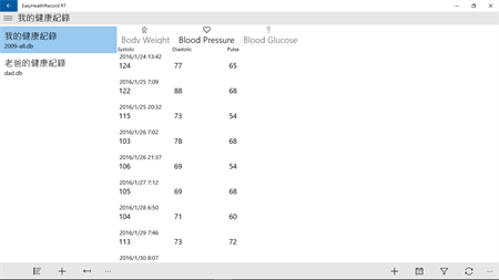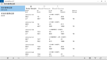 EasyHealthRecord RT can help you to record common values of body fat, blood pressure, blood glucose meters, and backup records to your network space.