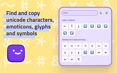 Find and copy unicode characters, emoticons, glyphs and symbols with Ejimo.