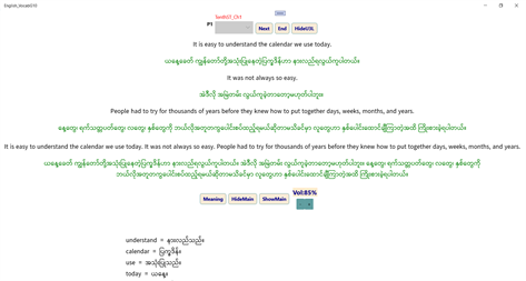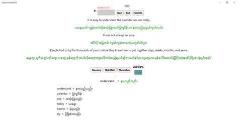 The students can learn from this application vocabulary from English Text G10 for Myanmar. Pronunciation and meanings can be learnt from here too.