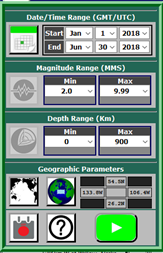 The EQTrace Earthquake Atlas is an interactive web app that displays selected earthquake events from the publicly-available United States Geological Survey (USGS) on-line repository. You enter search criteria, optionally including a designated geographic area, and the events are presented on a 3-dimensional globe or a 2-dimensional map. EQTrace provides both a static display and a simulation capability; the simulator displays the selected events in time order.