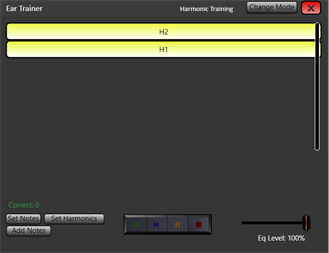 The ear training function allows you to train your ear for harmonic recognition. Audio can be sourced from a microphone input or from .wav/mp3 file.