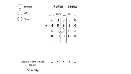 The numbers are aligned automatically so that you can concentrate on solving the operations for each column. Trading is animated step by step so you can see what happens.