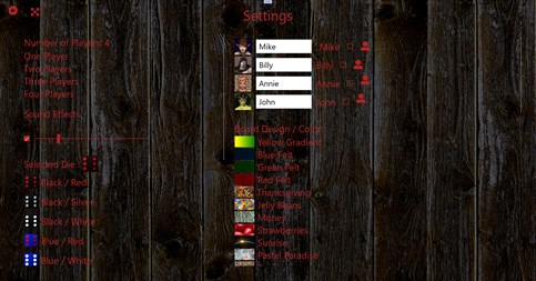 When the player is satisfied with the turn, save the score by using the “Save Score” button. At least 1 die of value must be selected after each roll. If the roll has no significant value, it might be better to only select 1 die (preferably a 1, but a 5 will work also) and roll again. Keep an eye on the scores. If a player is way behind and it is nearing the end of the game, more risk might be needed to catch up. On the other hand, if a player is way ahead, it moght be worth while to play it safe and “Coast” through the remaining turns by not taking more than 1 roll per turn. To play against the computer (Premium Version Only), Just go into settings and click the checkbox next to the player that you would like to be the computer. You can actually have all 4 players be computers if you’d like. When the checkbox is clicked, the icon to the right should change from a human to a robot, indicating that the computer has taken over that player. During the game, human and robot icons are displayed next to the names, indicating which are computer players.