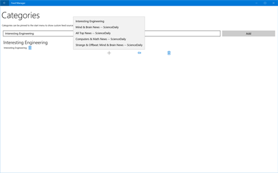 Features: - RSS and Atom feed management - OneDrive synchronization across devices - Local (device specific) feed sources - Filtering by source and category - Live tiles in all sizes - Pinnable live tiles with categories - Adaptable theme and UI