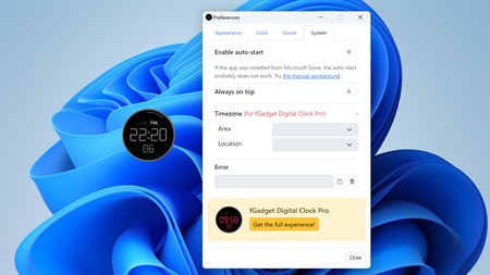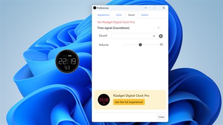 The "fGadget Digital Clock Lite" is a simple desktop digital clock gadget. You can freely move the app on your desktop dragging the app using your mouse. The app allows you to select your favorite face style, to change transparency, and to show/hide the second indicator.